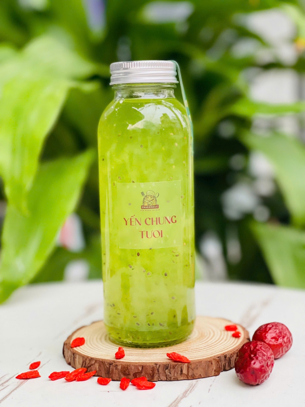 Thành phần: Yến sợi tươi, đường phèn, nước, topping (hạt chia, đông trùng, táo đỏ, kỳ tử, saffron, gừng tươi, sữa tươi, hạt sen, long nhãn...)